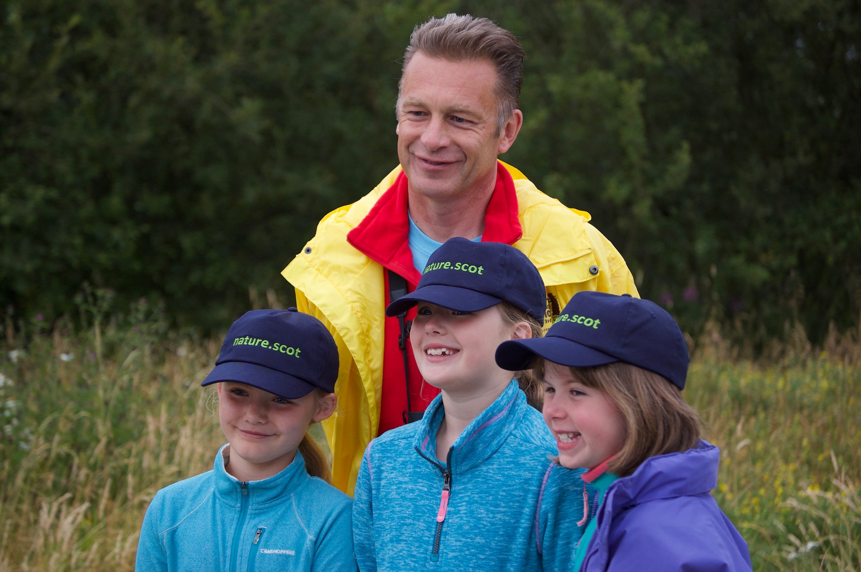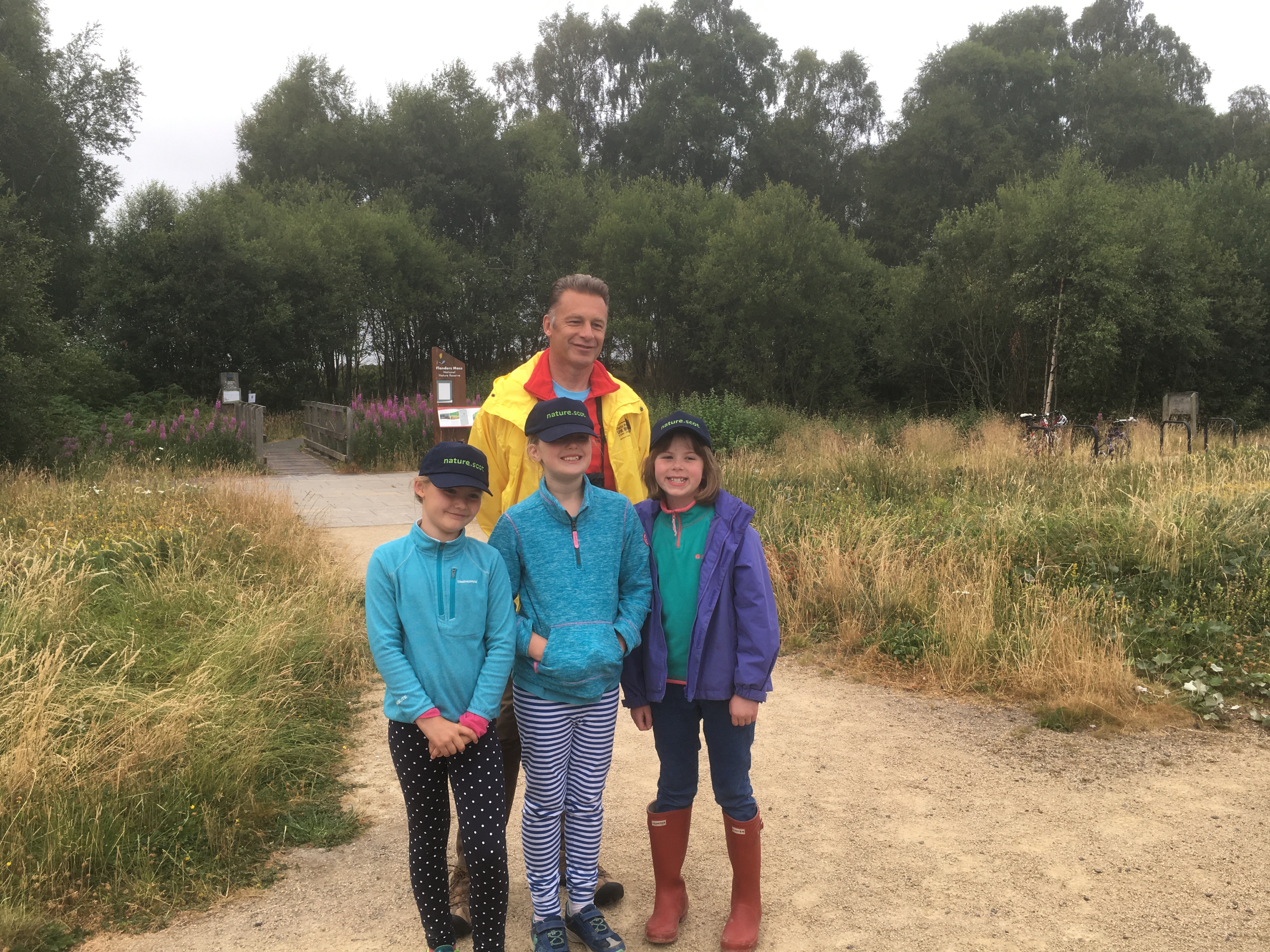 Photos of Chris Packham touring the Reserve with Shona, Niamh and Deia - credit Scottish Natural Heritage.
