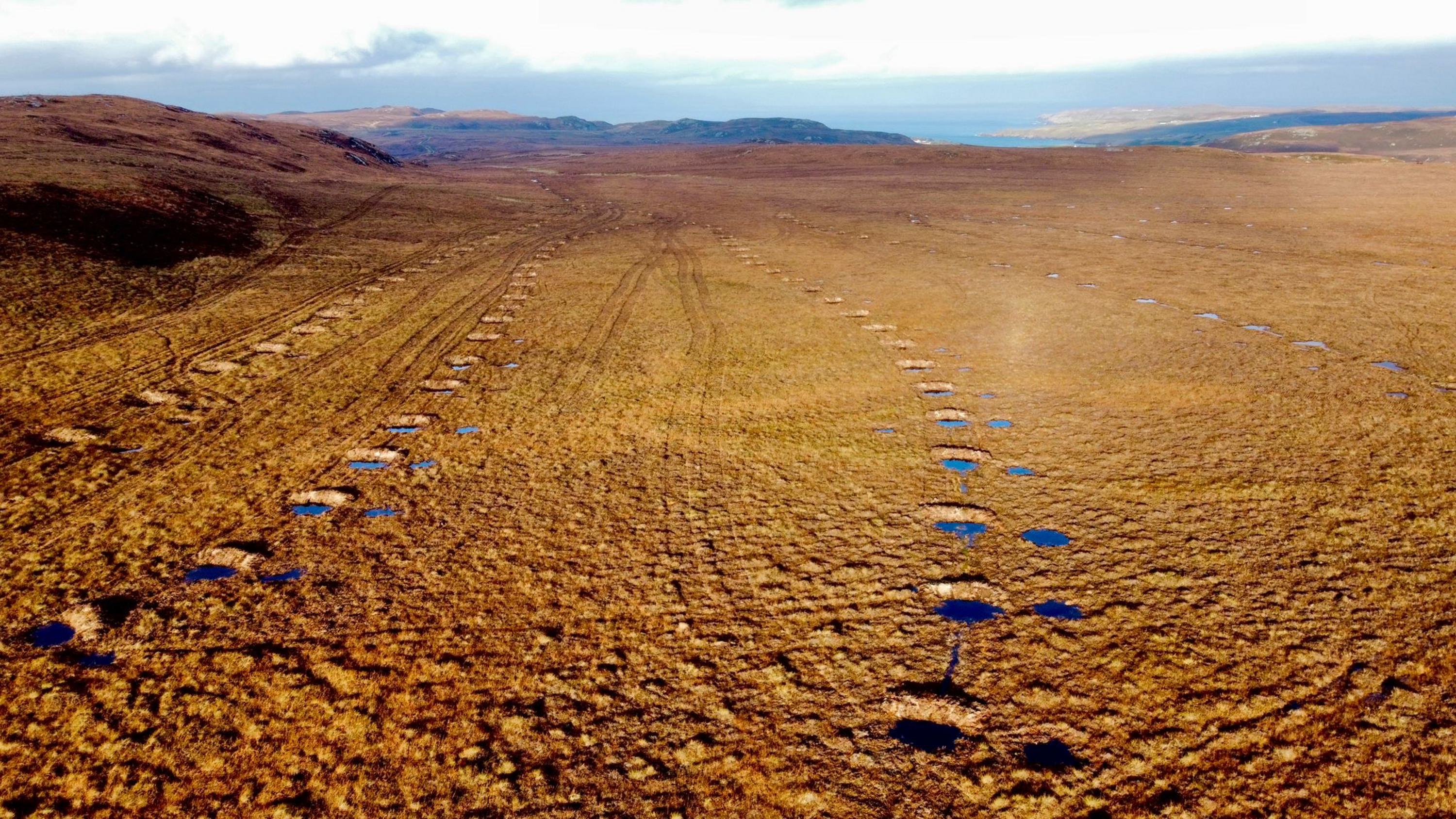 Aerial view of peatland restoration work at Armadale Farm, Caithness - credit NatureScot-Peatland ACTION