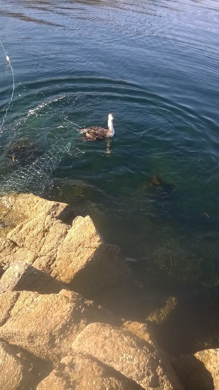 The net was found at Geshader, West Loch Roag on 17 March. The diver was probably saved from drowning by getting entangled at the surface rather than underwater. It was freed from the net and released apparently unharmed. A similar net recovered from Loch Roag last year contained a drowned great northern diver, while in 2013, a porpoise perished in East Loch Roag in similar circumstances.