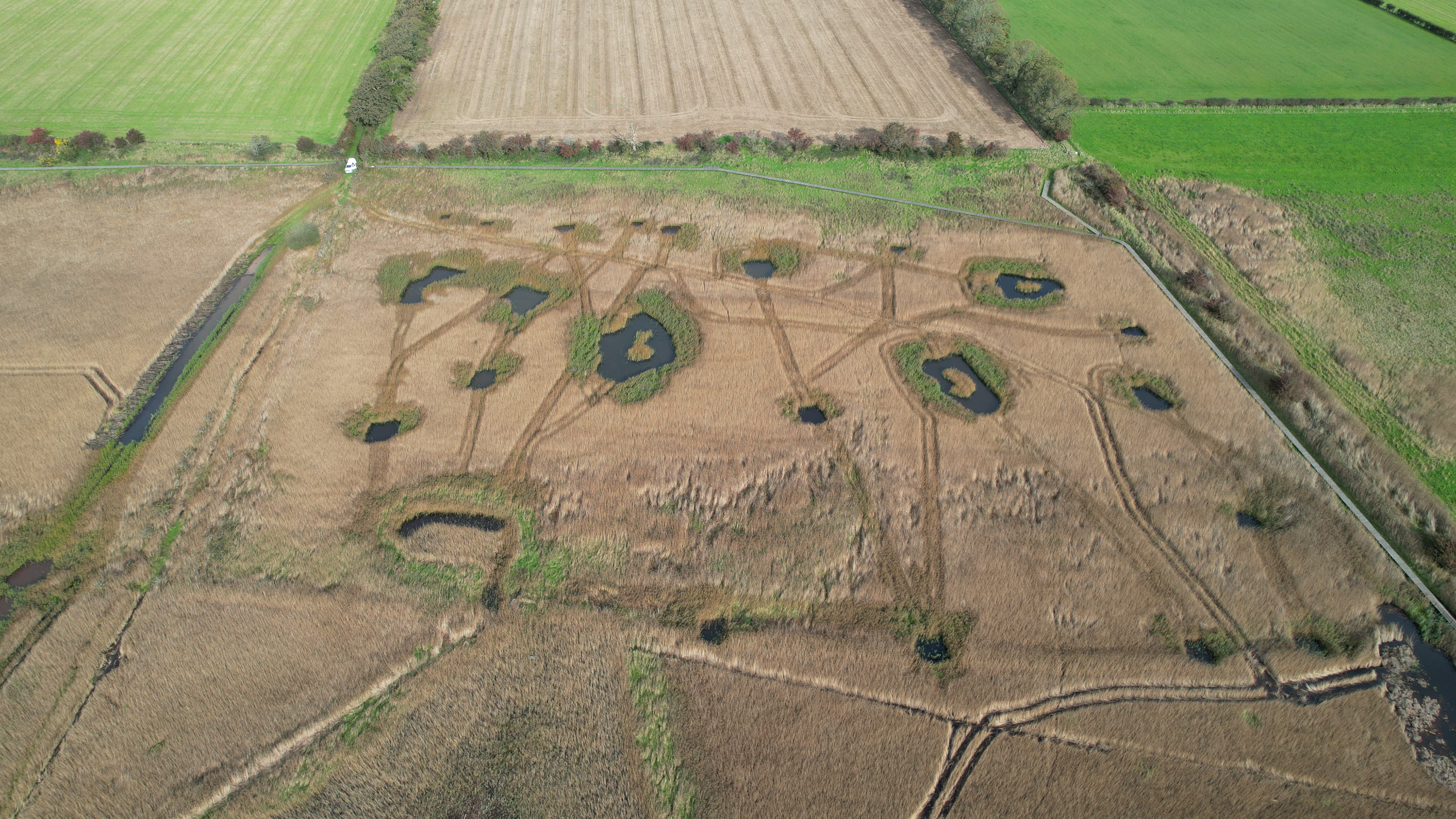 Drone image of a section of reedbed before restoration work started ©NatureScot