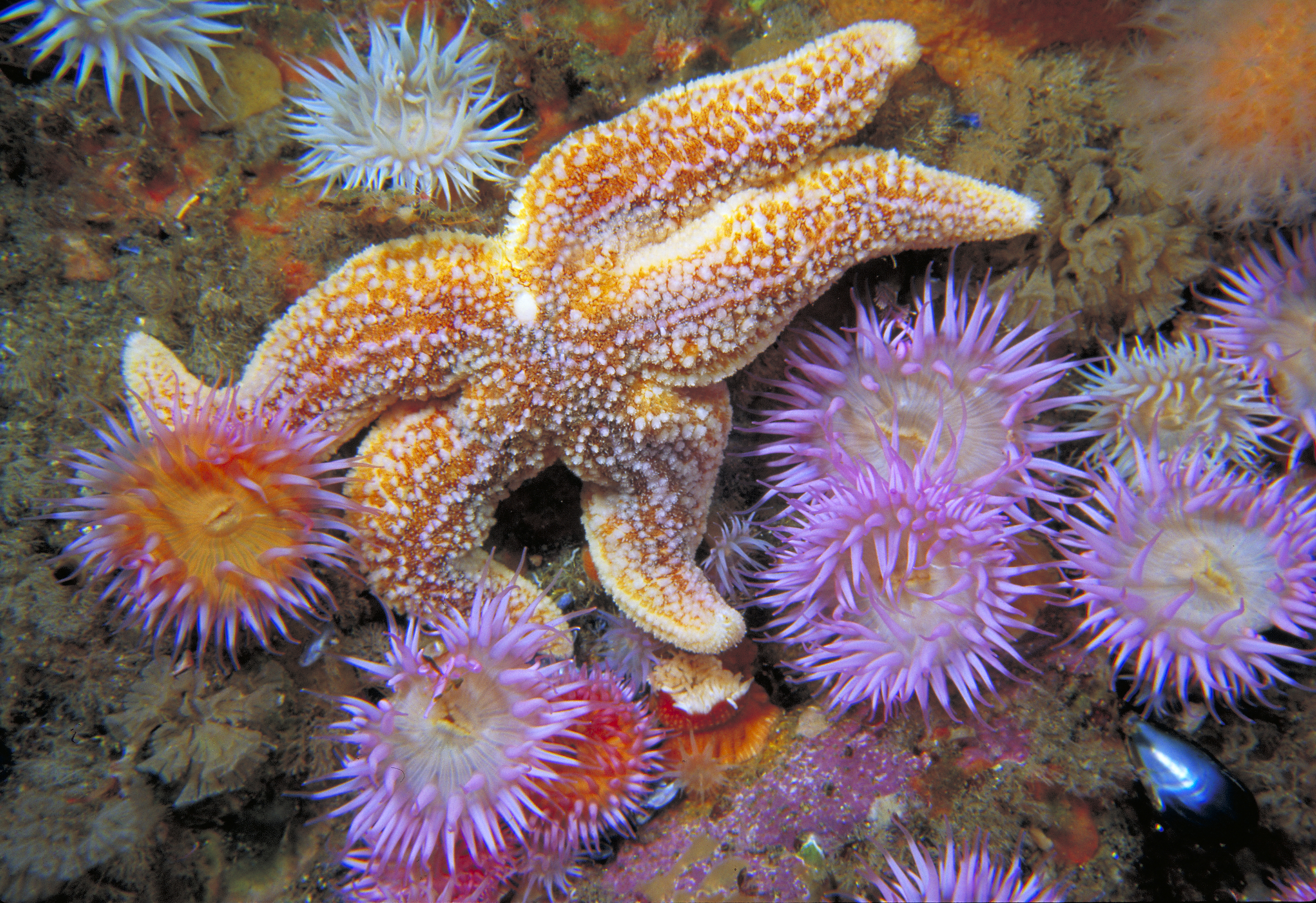 Sea Anemones (Sagaria elegans) and starfish, St.Kilda, Western Isles. Copyright Sue Scott-SNH
