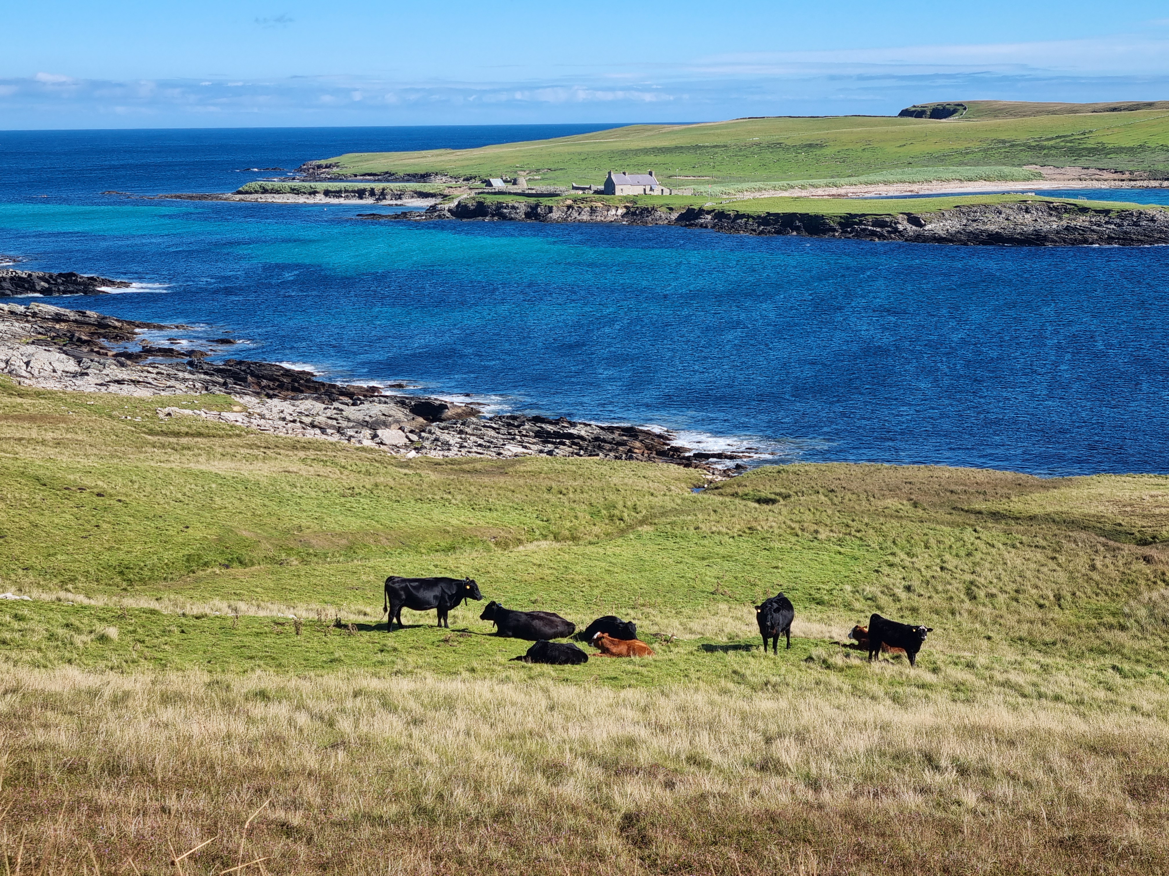 Cattle wearing Monil virtual fence collars, Noss Sound Bressay, Shetland (c) Nathalie Pion
