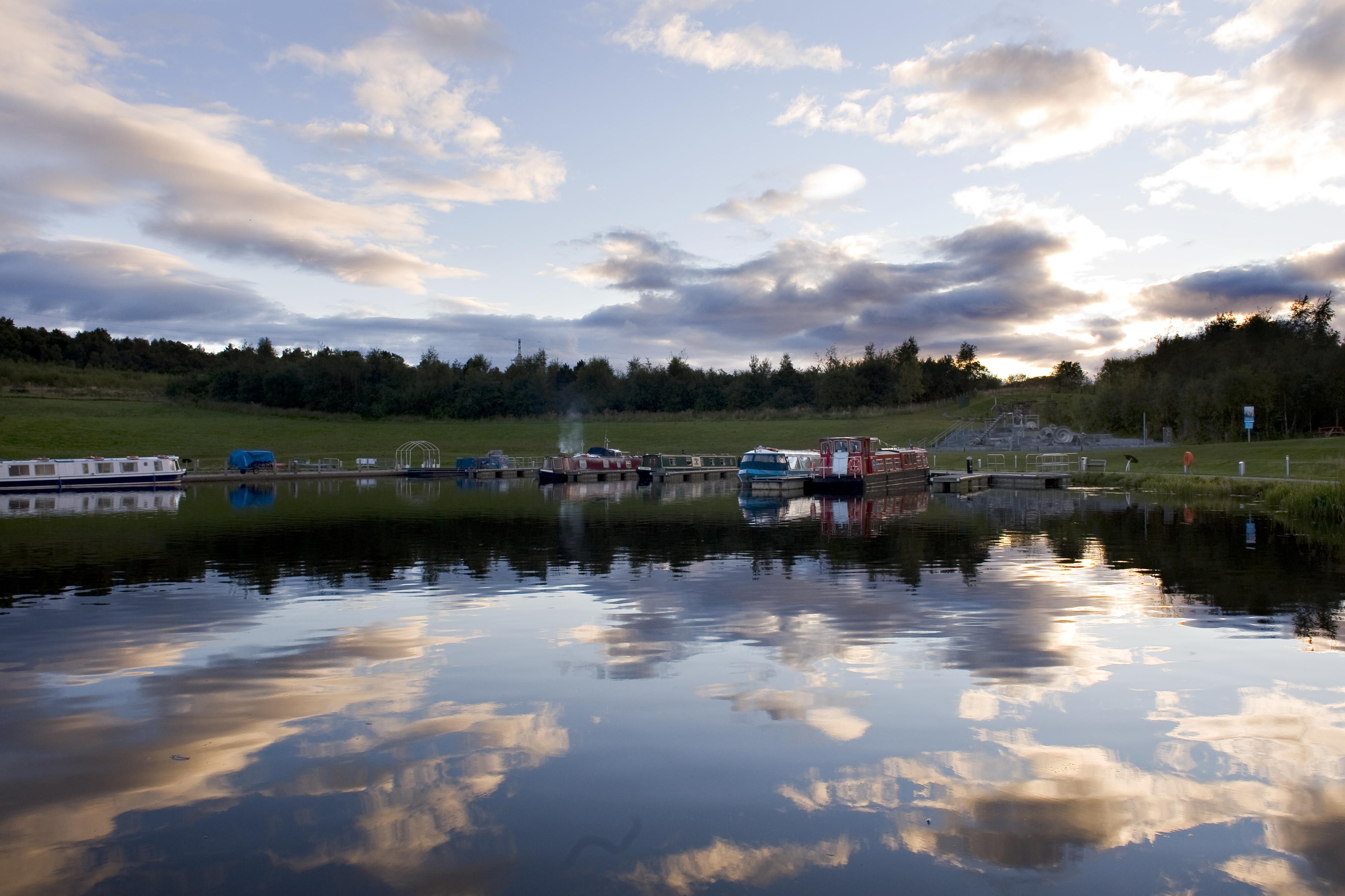 landscape view, Falkirk Wheel basin, Forth & Clyde Canal, Union Canal, bFalkirk, JMT